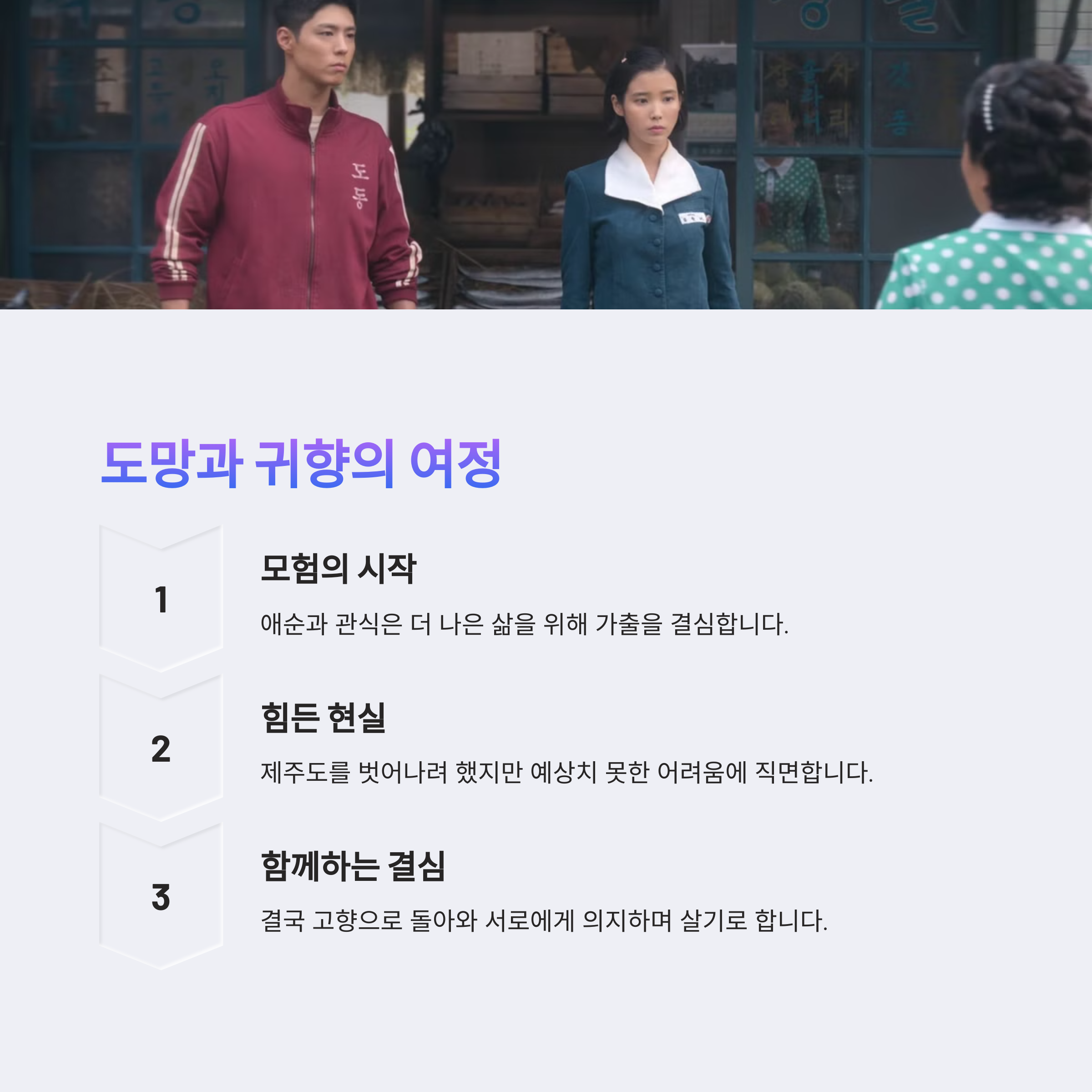 넷플릭스 오리지널 드라마 '폭싹 속았수다'(When Life Gives You Tangerines)가 1-4화에서 아이유(이지은)와 박보검이 연기한 애순과 관식의 청춘 시절과 첫사랑 이야기를 감동적으로 그려낸 후, 이제 5화에서는 어떤 이야기가 펼쳐질지 많은 팬들이 궁금해하고 있습니다. 드라마의 흐름과 4화에서 보여준 플래시포워드 장면을 바탕으로 5화의 내용을 예측해 보았습니다.